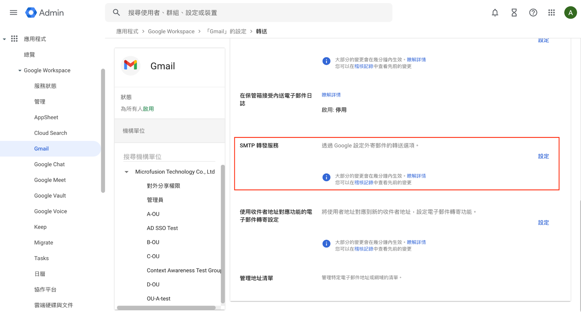 第一階段:設定 Google SMTP Relay 轉發服務