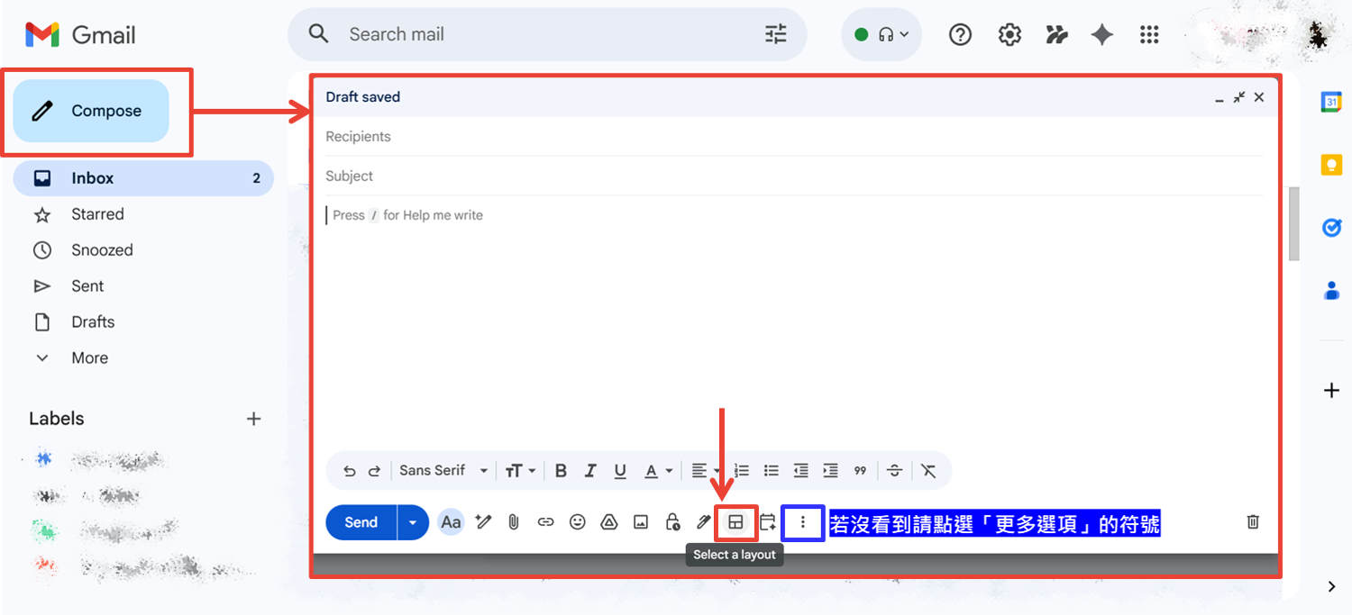 *宏庭小提醒: 如果您是公司或學校帳戶,卻在 Gmail 找不到「版面配置」圖示,記得聯繫您的系統管理員,確認是否已在管理後台啟用「文件建立」功能喔!